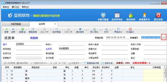 紅管家送貨單軟件、亞拓管理軟件等在單據(jù)保存的時(shí)候會(huì)自動(dòng)生成單據(jù)編號(hào),可根據(jù)此單據(jù)編號(hào)來(lái)查詢單據(jù)信息。為了更加自定義編號(hào)內(nèi)容,軟件支持修改自動(dòng)生成的單據(jù)編號(hào),以送貨單軟件為例,示范如何修改已生成的單據(jù)編號(hào)。