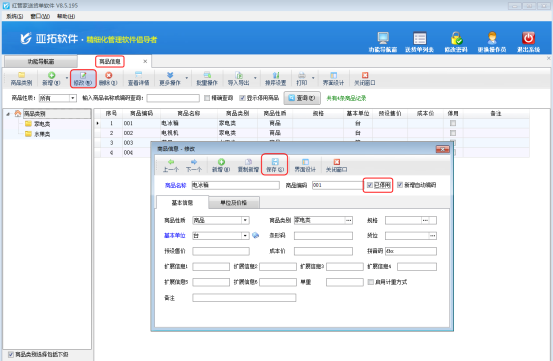 亞拓管理軟件、紅管家倉庫管理軟件及紅管家送貨單軟件都可以對商品信息進行管理,如果有些商品開過了單據,您以后不再使用該商品進行開單了,可以把該商品設置為停用狀態。已停用的商品無法被用于開單,選擇商品窗口可以隱藏已停用的商品。如何把不用的商品設置為停用呢?本篇文章以紅管家送貨單軟件為例詳細介紹一下送貨單軟件內如何把商品設置為停用狀態。