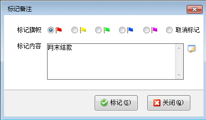 在“標記備注”窗口選擇標記旗幟,錄入標記內(nèi)容,然后點擊“標記”按鈕。如圖2所示: