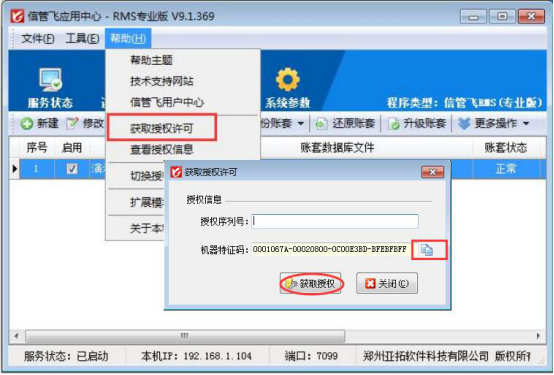 授權(quán)版更換電腦分以下兩個步驟(以信管飛RMS軟件為例)