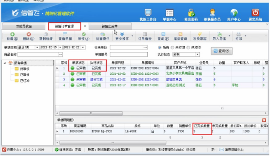 信管飛RMS軟件、信管飛送貨單軟件等都支持先開訂單,出庫單可引用訂單開單,出庫單審核完成引用的訂單執(zhí)行狀態(tài)會(huì)自動(dòng)更新,執(zhí)行狀態(tài)更新情況:出庫數(shù)量<訂單數(shù)量,訂單執(zhí)行狀態(tài)變?yōu)椴糠滞瓿桑鰩鞌?shù)量=訂單數(shù)量,訂單執(zhí)行狀態(tài)變?yōu)橐淹瓿伞?/P>