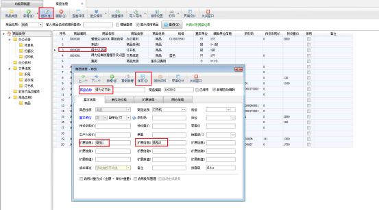 在功能導(dǎo)航窗點(diǎn)“基礎(chǔ)資料”—》“商品信息”即可進(jìn)入“商品信息”界面,修改商品信息如圖所示,輸入擴(kuò)展信息1和擴(kuò)展信息2的內(nèi)容進(jìn)行保存。
