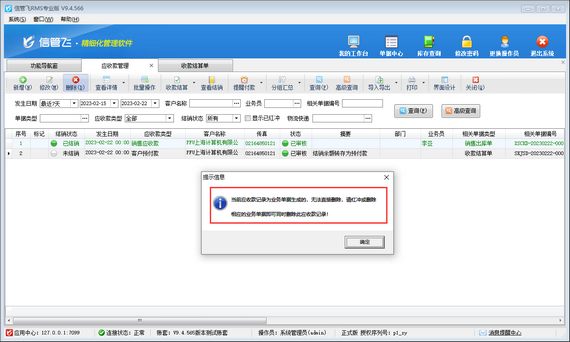系統支持收款結銷余額轉存生成客戶預付款,結銷余額轉存生成的客戶預付款記錄無法直接刪除,如下圖所示,本篇文章介紹一下收款結銷余額轉存生成的客戶預付款記錄,如何刪除?