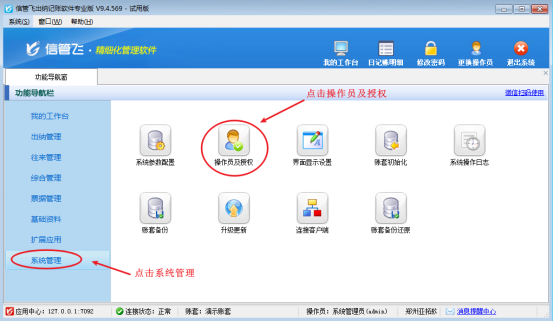 如果需要操作員反審修改發(fā)票,軟件也支持設(shè)置允許操作員反審修改發(fā)票權(quán)限,下面以信管飛出納記賬軟件專業(yè)版為例來演示一下設(shè)置操作員可反審修改發(fā)票權(quán)限操作步驟。