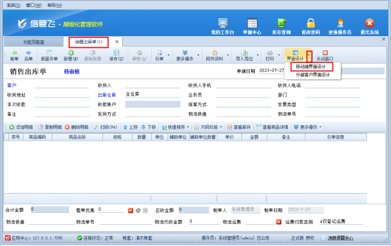 以“銷售出庫單單據主體項”示范,功能導航窗點擊銷售管理,打開銷售出庫單,點擊工具欄界面設計三角符號下的“移動端界面設計”打開移動端界面設計界面,(或者直接打開界面設計,在界面設計下方打開移動端界面設計),如下圖所示: