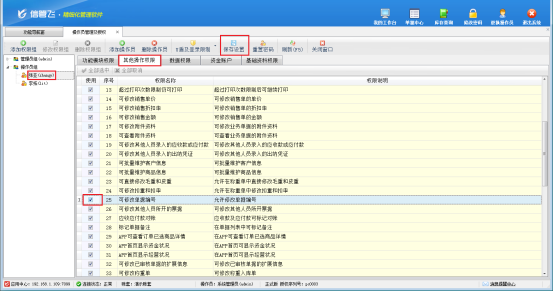 切換“系統(tǒng)管理員”登錄,在功能導航窗點擊“系統(tǒng)管理”—》“操作員及授權”進入操作員管理及授權界面,選中操作員“張亞”,點擊“其他操作權限”,勾選“可修改單據編號”權限,勾選后點擊保存。