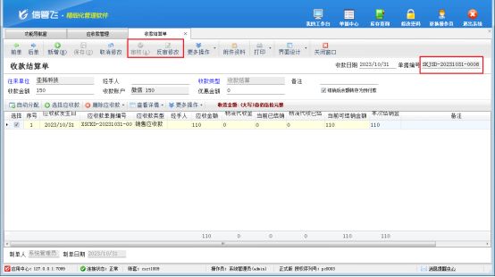此文章相關演示視頻:反審修改收款結算單時提示對應的應收應付款已核銷,如何解決演示視頻