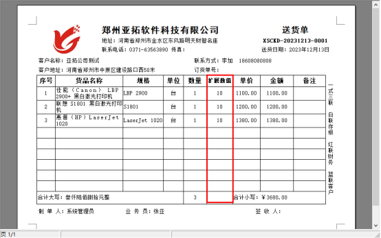 打印模板預覽界面中默認是沒有此項,需要在模板中進行添加此項,打印預覽中擴展數(shù)值的合計為空,如下圖所示: