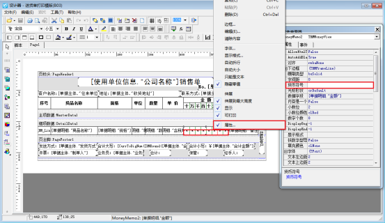 如何在打印模板上刪除金額的貨幣符號?在開單界面打印下選擇打印格式設計,打印格式設計界面點擊“設計格式”,進入模板設計器界面,選擇細項數據對應的金額文本框,鼠標右鍵單擊屬性,在屬性對象查看器中找到貨幣符號刪除符號“¥”,如圖所示: