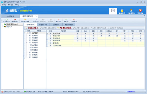 除了操作員權(quán)限設置功能外,信管飛出納記賬軟件還具備多種實用功能。例如,它支持多平臺使用,用戶可以在電腦、手機或平板上隨時隨地進行財務管理操作;同時,軟件還提供了豐富的報表和數(shù)據(jù)分析功能,幫助企業(yè)更好地了解財務狀況和經(jīng)營情況。