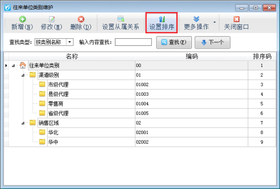 功能導航窗點“基礎(chǔ)資料”—》“客戶信息”即可進入“客戶信息”界面,工具欄點“單位類別”進入往來單位類別維護界面,點“設(shè)置排序”按鈕,可進行排序,點“自動排序”會按照編碼自動進行排序;點“上移”、“下移”按鈕可向上、向下調(diào)整顯示位置,如圖所示。