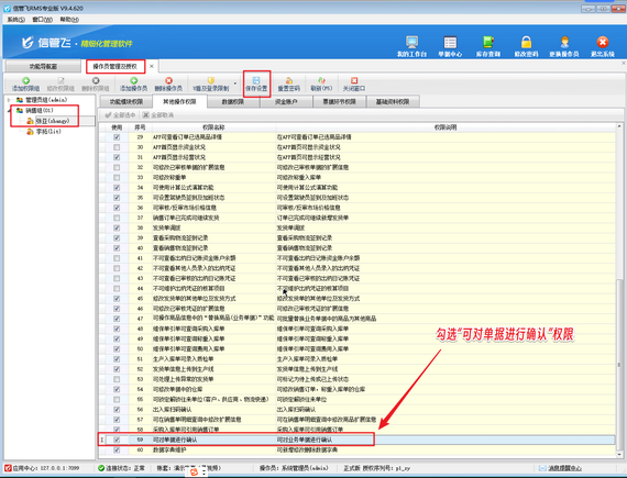 出現(xiàn)以上問題的原因是:操作員賬號沒有可對單據(jù)進(jìn)行確認(rèn)的權(quán)限。