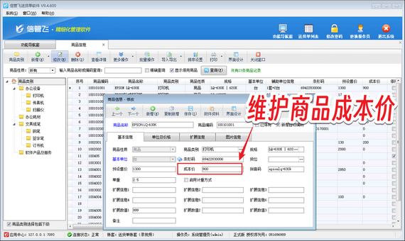首先,信管飛送貨單軟件支持一鍵維護(hù)商品成本。只需在“基礎(chǔ)資料”模塊中的“商品信息”內(nèi),簡單錄入每個(gè)商品的成本價(jià),系統(tǒng)就能為你自動保存,讓商品管理變得井井有條。這樣,無論你的商品種類多么繁雜,都能輕松應(yīng)對。