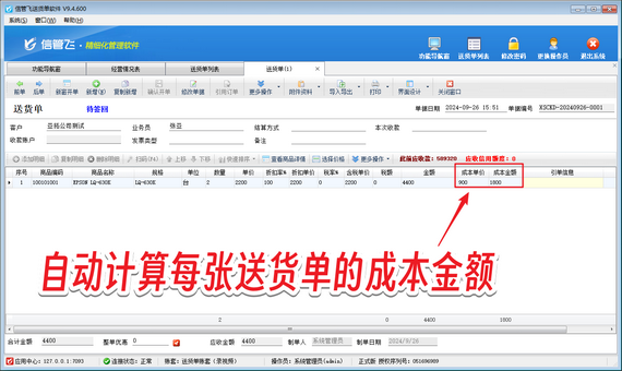更重要的是,信管飛送貨單軟件還能自動計(jì)算利潤。每當(dāng)你開具一張送貨單時(shí),系統(tǒng)都會根據(jù)商品的銷售價(jià)和成本價(jià)自動為你計(jì)算出銷售毛利。這樣,你再也不用為繁瑣的計(jì)算而煩惱,利潤情況一目了然。