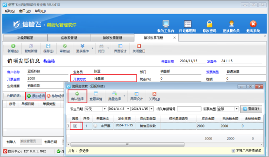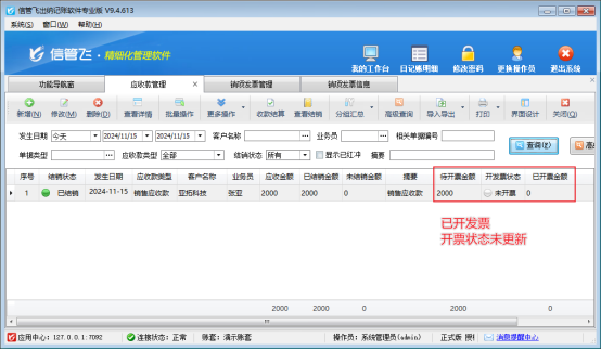 信管飛出納專(zhuān)業(yè)版支持直接登記應(yīng)收應(yīng)付款,并且支持對(duì)登記的應(yīng)收應(yīng)付款開(kāi)對(duì)應(yīng)的進(jìn)銷(xiāo)項(xiàng)發(fā)票功能,默認(rèn)新增的應(yīng)收款發(fā)票狀態(tài)為“未開(kāi)票”,已開(kāi)票的應(yīng)收款開(kāi)票狀態(tài)依然顯示“未開(kāi)票”,本文示范下如何解決?