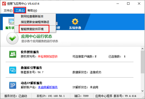 復制新電腦后,紅色應用中心程序中點擊工具下的“智能修復軟件環(huán)境”,修復成功重啟即可正常使用軟件。