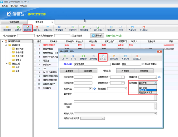 該功能操作路徑簡潔直觀:用戶通過功能導(dǎo)航窗進(jìn)入“基礎(chǔ)資料”模塊,點(diǎn)擊“客戶信息”打開客戶列表。選擇目標(biāo)客戶后點(diǎn)擊“修改”按鈕,在客戶信息編輯界面找到“附加信息”選項(xiàng)卡,即可根據(jù)客戶實(shí)際需求設(shè)置默認(rèn)發(fā)票類型(如圖示)。例如,可為長期合作企業(yè)“藍(lán)貓文具店”預(yù)設(shè)“普通發(fā)票”為默認(rèn)選項(xiàng)。