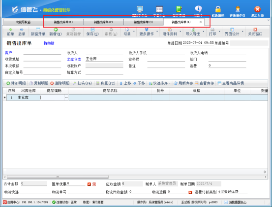 設置完成后,用戶只需在功能導航窗中點擊“銷售管理”—“銷售出庫單”,即可打開新增銷售出庫單界面。更令人興奮的是,此時用戶可再次通過相同路徑,新增第二個、第三個……乃至更多銷售出庫單界面,實現多窗口并行操作。無論是對比查看、復制信息還是獨立編輯,都能游刃有余,大大提升了業務處理的速度與準確性。