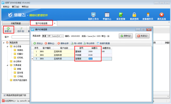 信管飛RMS軟件:輕松搞定同一商品不同型號的客戶價格管理