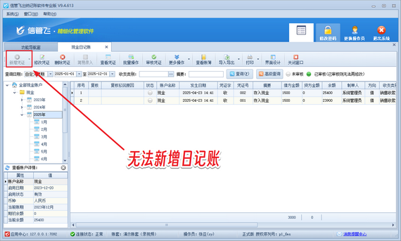 在數(shù)字化財務(wù)管理中,精準(zhǔn)的權(quán)限管理是保障數(shù)據(jù)安全與效率的核心。若操作員賬號登錄信管飛出納記賬軟件后無法新增日記賬憑證,通常源于權(quán)限配置未啟用。本篇文章為您呈現(xiàn)高效解決方案。