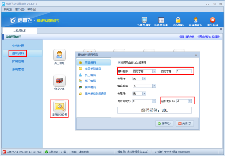 1.自定義編碼規(guī)則:根據(jù)企業(yè)需求設(shè)置前綴(如商品類別編碼、所屬部門編碼、固定字符)、分隔符、流水號(hào)樣式、流水號(hào)等組合規(guī)則;