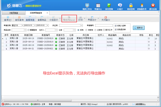 此文章相關(guān)演示視頻:操作員無法導出采購單明細,如何解決?