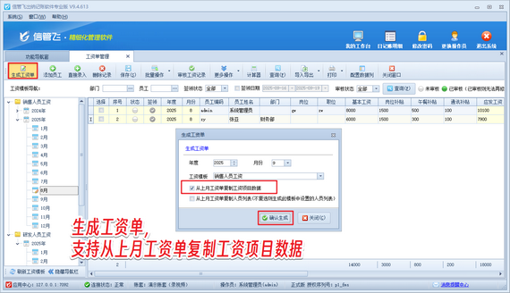 智能計算引擎大幅簡化操作流程,輸入基礎(chǔ)數(shù)據(jù)后,系統(tǒng)可自動根據(jù)工資模版精準(zhǔn)核算應(yīng)發(fā)/實發(fā)工資,并支持從上月數(shù)據(jù)快速復(fù)制,減少重復(fù)錄入。