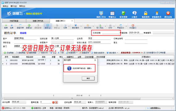 此功能亮點在于:訂單保存時系統自動檢測交貨日期,空缺則彈出警示并鎖定保存按鈕,從源頭消除人為疏漏。