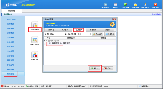 此文章相關(guān)演示視頻:如何啟用庫(kù)存分倉(cāng)明細(xì)查詢(xún)功能演示視頻 信管飛RMS軟件支持庫(kù)存查詢(xún)功能,當(dāng)用戶(hù)存在多個(gè)倉(cāng)庫(kù)并且需要查詢(xún)多個(gè)倉(cāng)庫(kù)的庫(kù)存明細(xì)時(shí),可能會(huì)發(fā)現(xiàn)查詢(xún)統(tǒng)計(jì)處無(wú)法進(jìn)行庫(kù)存分倉(cāng)明細(xì)查詢(xún),這是由于未啟用相關(guān)參數(shù)導(dǎo)致的,本篇文章以“信管飛RMS軟件專(zhuān)業(yè)