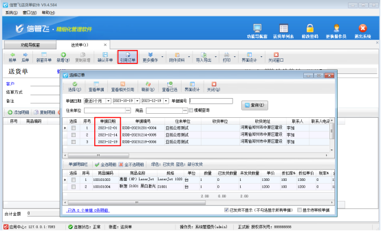 演示視頻觀看鏈接:如何設(shè)置引單窗口單據(jù)日期升序顯示? 信管飛送貨單軟件新開(kāi)送貨單支持引用訂單開(kāi)單,引用訂單如果存在多張,引單窗口會(huì)顯示所有記錄,軟件引單窗口默認(rèn)按降序顯示記錄,最新開(kāi)的訂單在最上方,如下圖所示: 降序顯示有時(shí)用戶(hù)找之前的訂單需要往下拖動(dòng)查