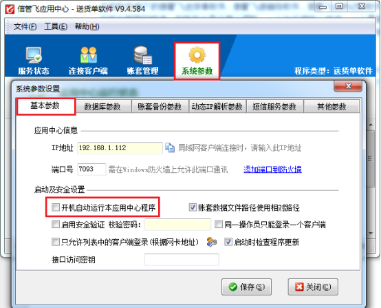 亞拓軟件旗下的信管飛送貨單軟件、信管飛進(jìn)銷(xiāo)存軟件、信管飛出納記賬軟件等等軟件目前升級(jí)為新架構(gòu)程序,安裝后會(huì)顯示兩個(gè)圖標(biāo),一個(gè)為應(yīng)用中心程序,一個(gè)是客戶(hù)端程序。軟件安裝完成后使用需要先打開(kāi)應(yīng)用中心程序(紅色圖標(biāo)),然后再打開(kāi)客戶(hù)端程序(藍(lán)色圖標(biāo))。以信管飛送貨單軟件為例,示范下如何取消設(shè)開(kāi)機(jī)自啟動(dòng)? 應(yīng)