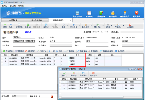 演示視頻觀看鏈接:同一商品如何設置不同型號有不同客戶價格? 信管飛RMS軟件、信管飛送貨單軟件等支持設置同一個商品可以設置不同的型號,且支持不同型號可以設置不同客戶價格,方便管理相同名稱不同型號有不同客戶價格的情況,本文以“信管飛RMS軟件”為例,示范下如何操作? &