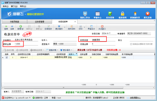 信管飛RMS軟件是集進銷存、記賬一體的軟件,軟件默認開進出庫單據(jù)生成對應的應收應付款,有客戶存在不退貨僅退款的情況,這種在軟件中應該如何登記?本文以信管飛RMS標準版示范下。 在功能導航窗點擊往來管理,打開應收款管理,應收款管理界面點擊“新增”按鈕,收款類型選擇“退貨應退款”,應收類型為固定的,僅退款可