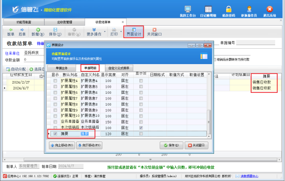 應收、應付賬款管理在現(xiàn)代企業(yè)資金管理中扮演著至關重要的角色,其管理效率的高低直接關系到企業(yè)的運營成果。出納記賬軟件中含有應收應付往來賬款管理功能,支持對應收款、應付款、預收款、預付款、退貨款等進行管理。有用戶在進行收款結算操作時,需要能直接在結算單界面展示應收款信息的摘要。本篇文章以“信管飛出納記賬軟件”為例介紹下如何設置“摘要”在收款結算單界面顯