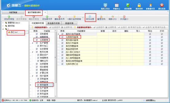此文章相關演示視頻:操作員登錄無法進行庫存查詢,如何解決演示視頻 信管飛軟件支持設置多個操作員賬號并對操作員賬號設置權限,有用戶操作員賬號登錄時,查詢庫存可能會出現“您沒有操作權限,請與系統管理員聯系!”的提示,導致無法進行庫存查詢,這是由于操作員沒有