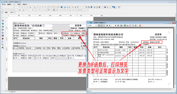 信管飛RMS支持開銷售單界面選擇發(fā)票類型,可以根據(jù)實(shí)際需要選擇不同的開發(fā)票方式,如下圖所示。 打印送貨單時(shí)同樣需要打印“發(fā)票類型”,但是在設(shè)計(jì)模板時(shí)直接調(diào)用[單據(jù)主體.發(fā)票類型]數(shù)據(jù)項(xiàng),打印預(yù)覽送貨單時(shí),發(fā)票類型會顯示為數(shù)字,而不是文字內(nèi)容,如下圖所示。 解決方法:在模板設(shè)計(jì)器內(nèi),將發(fā)票類