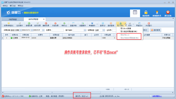 在企業的采購與銷售流程中,發票管理至關重要。信管飛出納記賬軟件憑借其強大的發票管理功能,助力企業高效、精準地處理發票信息。為了滿足部分用戶對于數據安全性的需求,防止操作員導出發票記錄,本篇文章介紹一下出納記賬軟件如何設置操作員不可導出進/銷項發票記錄。    演示視頻觀看鏈接:出納記賬軟件如何設置操作員不可導出進/銷項發票信息演示