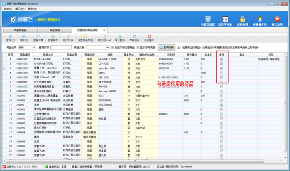 在當今商業管理中,高效的商品信息管理至關重要。信管飛系列軟件,包括RMS、倉庫管理軟件及送貨單軟件,均提供了強大的商品信息管理功能。其中,對于不再使用的商品,用戶可以輕松將其設置為停用狀態,確保開單過程無誤。本文將重點介紹在信管飛送貨單軟件中如何批量停用商品,提升工作效率。    在實際操作中,面對大量需要停用的商品,逐一處理無疑