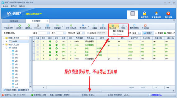 在財務管理日益精細化的今天,一款專業的出納記賬軟件顯得尤為重要。信管飛出納記賬軟件憑借其強大的工資管理功能,成為眾多企業的首選。該軟件不僅支持自定義工資模板,還能快速生成工資單,極大地提升了工作效率。    尤為值得一提的是,信管飛出納記賬軟件在安全性上也下足了功夫。通過設置操作員權限,企業可以確保敏感信息的保密性。例如,禁止操作