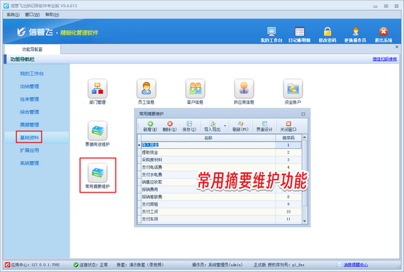 在快節(jié)奏的商業(yè)環(huán)境中,規(guī)范化的財務流程是企業(yè)高效運轉(zhuǎn)的基石。許多企業(yè)在使用出納記賬軟件時,常因憑證摘要隨意填寫導致賬目混亂、對賬困難。針對這一痛點,信管飛出納記賬軟件創(chuàng)新推出“摘要智能管控”功能,通過三步操作即可實現(xiàn)摘要規(guī)范化管理,讓財務數(shù)據(jù)更精準、流程更可控。 一鍵開啟規(guī)范模式:登錄軟件后,進入【系統(tǒng)管理】-【系統(tǒng)參數(shù)配置