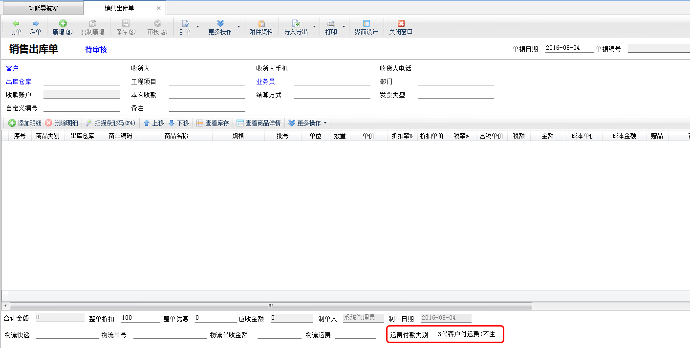 在實際產品銷售的過程中,物流運費分為我方承擔和客戶承擔的兩種情況,亞拓管理軟件標準版和專業版支持物流結算擴展功能模塊,其中運費付款類別分為我方付運費(生成運費應付款)、代客戶付運費(生成運費應付款,運費計入應收金額)、代客戶付運費(不生成運費應付款,運費計入應收金額)、僅登記運費幾種方式?本文以亞拓管理軟件專業版為例詳細介紹下進銷存軟件內如何設置銷售單運費默認