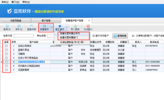 為了更好的管理客戶信息,亞拓管理軟件、倉庫管理軟件等新版本中增加了可批量維護客戶信息的功能。可以批量修改和完善客戶資料。 批量維護客戶資料需要操作員有操作權限,如何設置操作員有批量維護客戶信息的權限,操作步驟如下:系統管理員登錄軟件,打開“系統管理”→“操作員及授權”,選擇要添加權限的操作員,打開“其他操作權限”勾選上要選擇