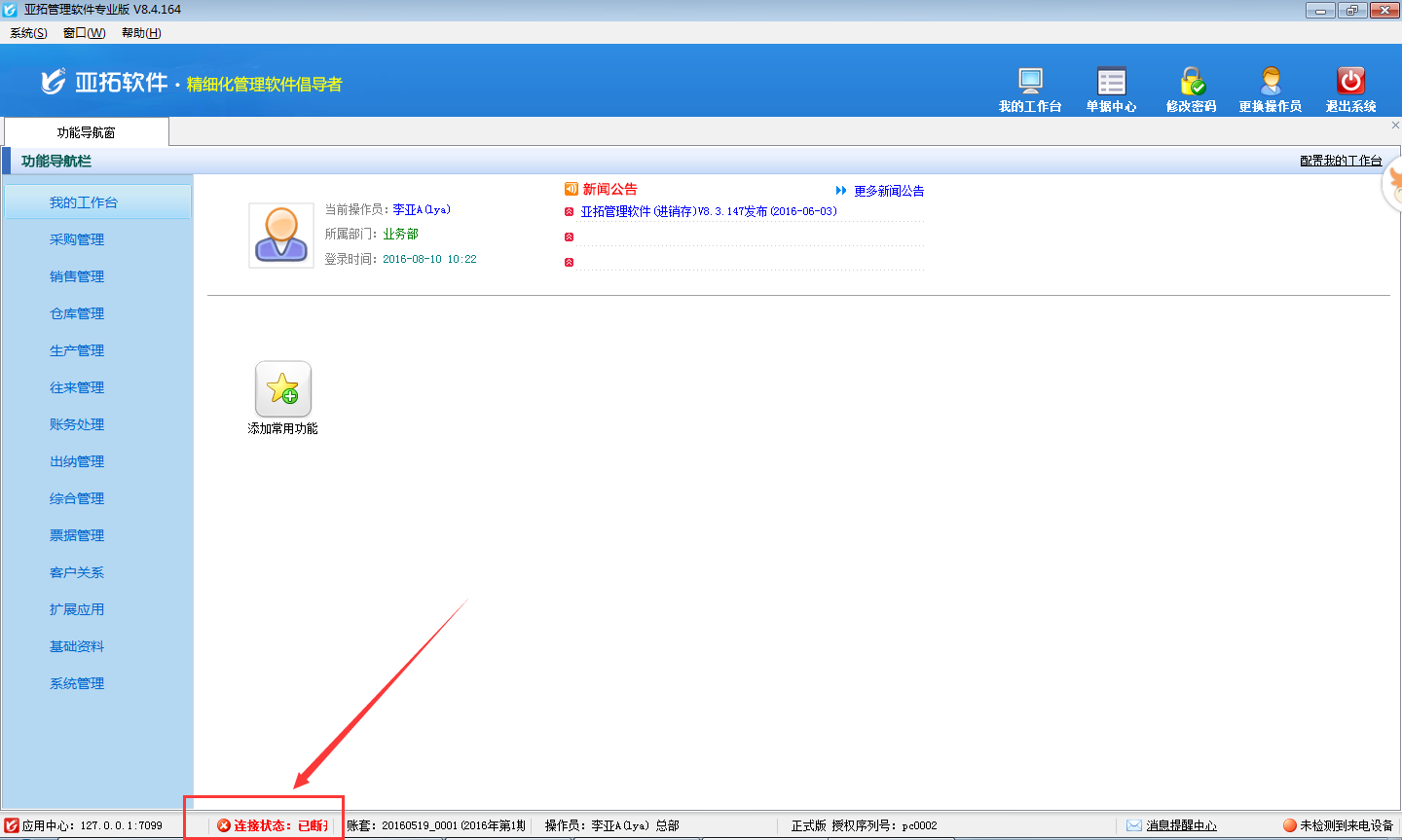 亞拓管理軟件、紅管家倉庫管理軟件、紅管家出納記賬軟件、紅管家送貨單軟件、紅管家票據打印軟件中都支持建立多個操作員并對不同的操作員分配不同的權限,可以使用不同的操作員賬號登錄軟件,另外支持設置同一操作員只能登錄一個客戶端,本篇文章以亞拓管理軟件專業版為例詳細介紹下進銷存管理軟件內如何設置同一操作員只能登錄一個客戶端? 在亞拓