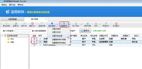 亞拓管理軟件和紅管家倉庫管理軟件都包括對客戶信息和供應商信息的管理?蛻粜畔⒓泄芾砗途S護客戶資料,在銷售業務中可以選擇客戶信息。供應商信息實現供應商資料的維護,在采購業務中可以選擇供應商信息。在業務往來中,有些客戶會變轉變為供應商的角色,有些供應商會轉變為客戶的角色,在軟件中如何快速改變客戶或供應商的單位性質呢?下面我們以亞拓管理軟件專業版為例詳細介紹下如何