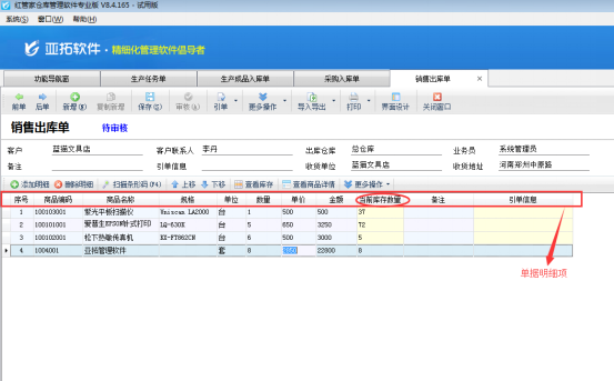 亞拓管理軟件、紅管家倉庫管理軟件都具有采購、銷售、庫存管理模塊,商品的出入庫如果可以實時查看到數量,則會更加方便管理商品的進銷存。亞拓管理軟件和紅管家倉庫管理軟件都支持讓出庫單、入庫單顯示當前庫存數量。下邊就以紅管家倉庫管理軟件專業版的銷售出庫單為例,講解一下如何顯示出當前商品的庫存數量。 打開軟件的“銷售管理”模塊,新開一