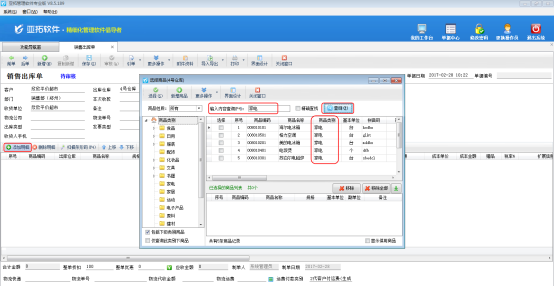 亞拓管理軟件、紅管家倉庫管理軟件和紅管家送貨單軟件開單時都支持選擇系統已錄入的商品信息,進行快速選擇商品來開單。開單時,選擇商品窗口,可以根據商品編碼、商品名稱、規格、條形碼等信息查詢商品,如果商品種類和商品名稱比較多,我們可以根據商品類別進行查詢。下面我們介紹一下在亞拓管理軟件專業版中銷售出庫單開單選擇商品時,根據“商品類別”查詢商品的操作步驟。