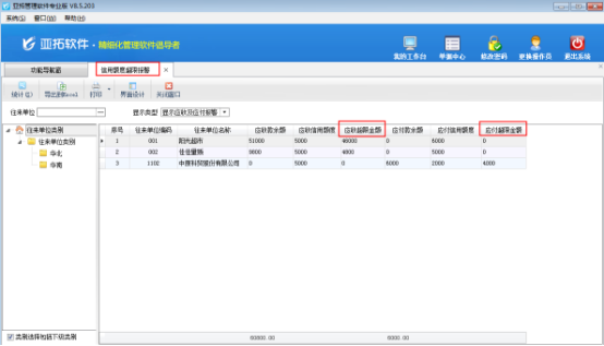 紅管家送貨單軟件包括應收款管理功能,可以對客戶設置應收信用額;亞拓管理軟件(星光版、標準版、專業版)包括應收應付款管理功能,可以對客戶及供應商設置應收應付款信用額,另外,亞拓管理軟件標準版和專業版還可以在往來管理模塊中的“相關查詢統計”中進行信用額度超限報警查詢。我們以亞拓管理軟件專業版為例,介紹如何設置往來單位的信用額度。