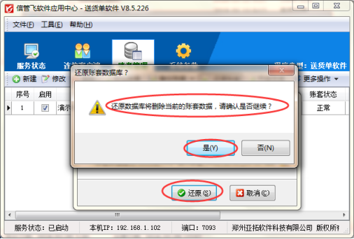 亞拓旗下所有軟件安裝完成后,數據備份均保存在安裝軟件目錄下的賬套文件備份文件夾中,如需要更換電腦使用,需要把最近日期的備份數據復制到新的電腦上,在新的電腦上安裝好軟件,在應用中心程序中對之前的賬套備份數據進行還原操作,就可以把之前的所有數據同步到這個電腦上。 本文章以信管飛送貨單軟件為例,示范下如何還
