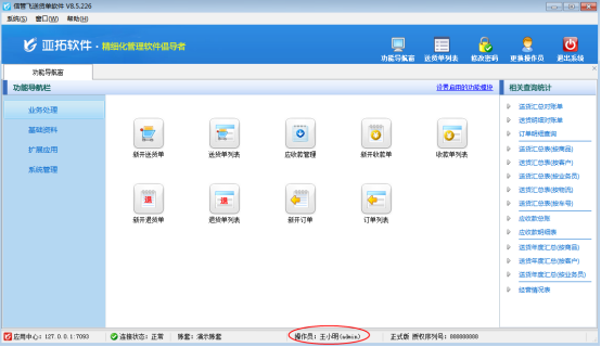 此文章相關演示視頻鏈接:如何修改系統管理員名字演示視頻 亞拓管理軟件、信管飛送貨單軟件、信管飛倉庫管理軟件、信管飛出納記賬軟件、信管飛票據打印軟件等安裝后默認登錄的操作員為“系統管理員”,如圖1、圖2所示。部分用戶在使用軟件時需要將“系統管理員”修改為自己的名字,在軟件內如何修改呢?本篇文章以信管飛送貨單軟件為例詳